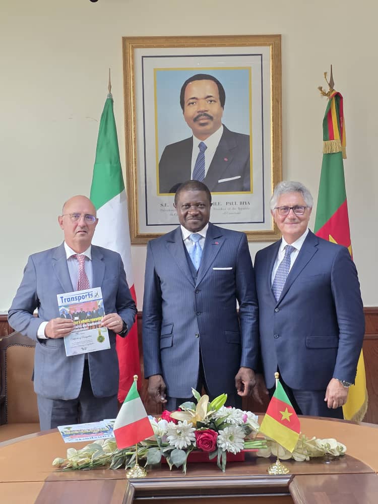 Le Ministre des Transports, Jean Ernest Masséna NGALLÈ BIBEHÈ, a accordé une audience à Son Excellence FILIPPO SCAMMACCA, Ambassadeur d’Italie au Cameroun, accompagné de M. Vincenzo DAGOSTINOS, Président Directeur Général de la société italienne Avantgarde.